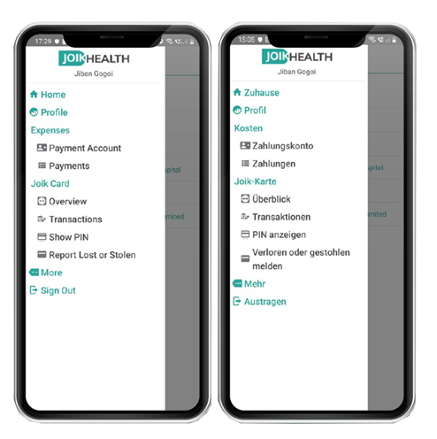 submit expenses and view status of submitted expenses - Check their Joik Card balance and control card (PIN,